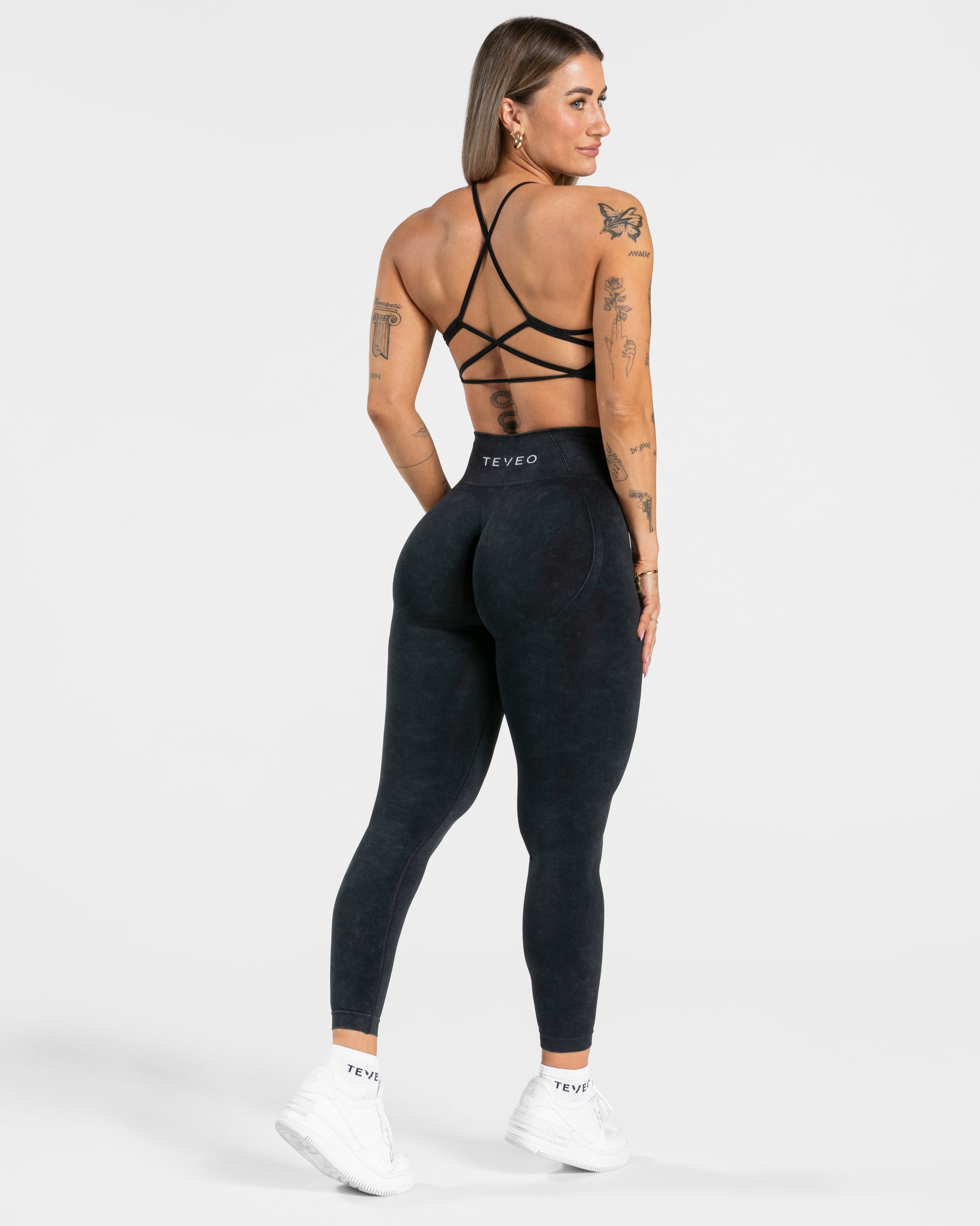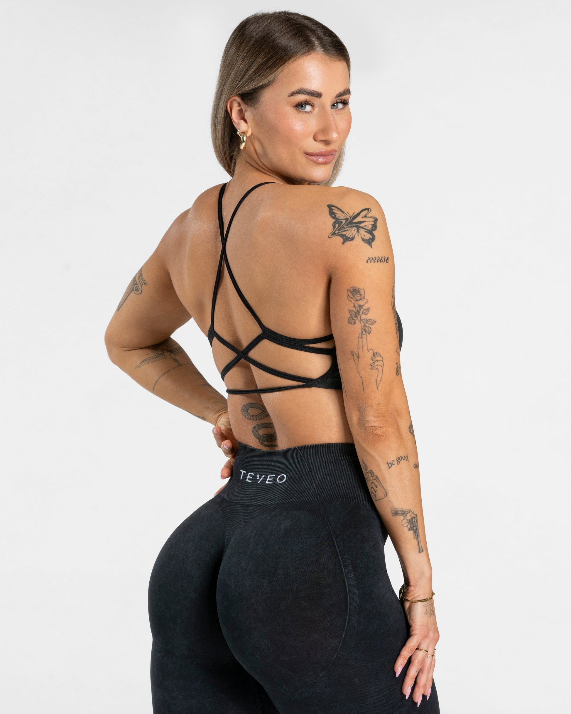 Der Acid BH in Schwarz ist kurz geschnitten und bietet dennoch einen guten Halt beim Training. Während er von vorne durch sein klassisches Design mit dem gestickten TEVEO Logo überzeugt, fällt von hinten die detaillierte Schnürung auf. So zaubert er dir einen wunderschönen Rücken.