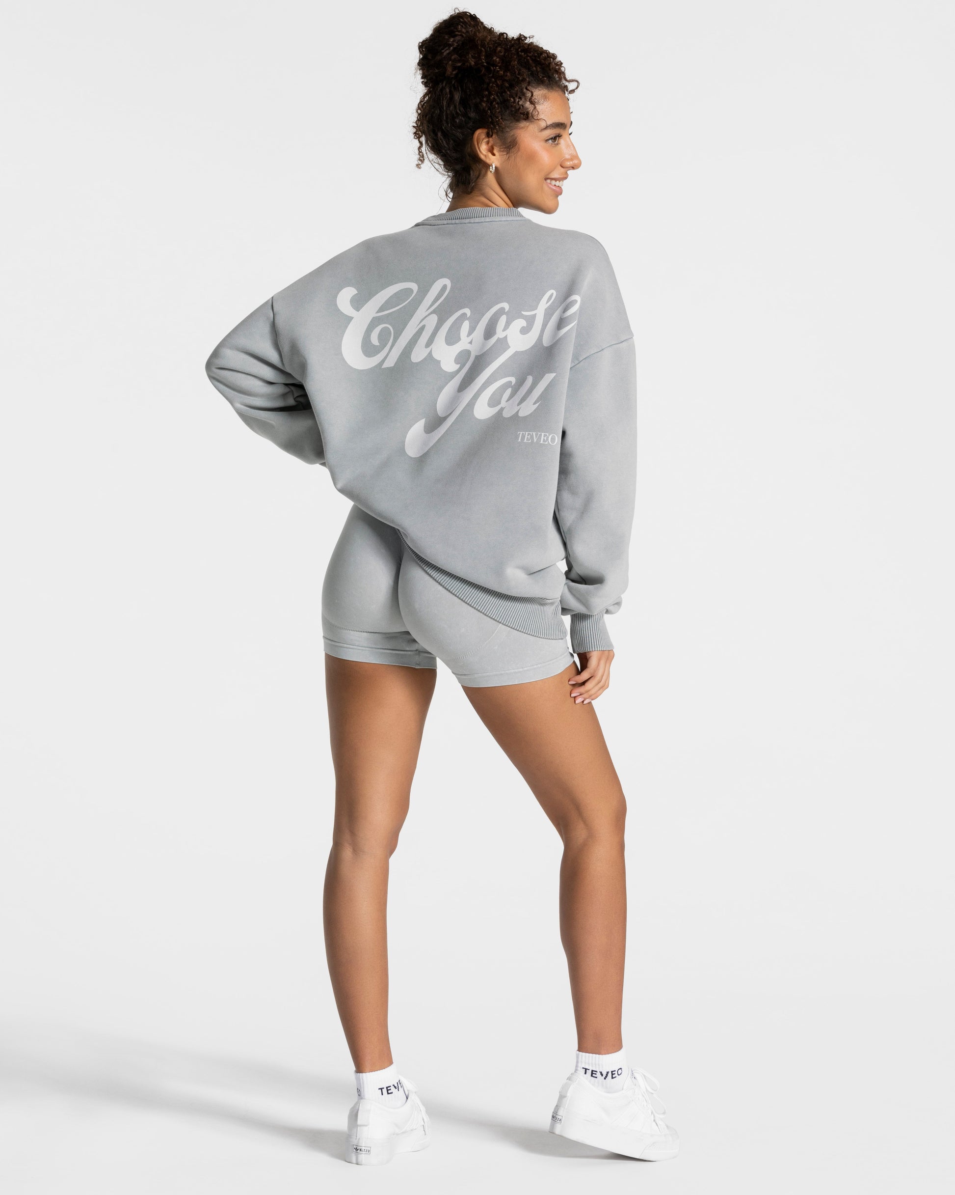 Unser TEVEO Acid Oversized Sweater in Hellgrau ist perfekt für die kälteren Tage, dein Warm-Up sowie deinen Alltag. Der große Water Based Print "Choose You" auf dem Rücken ist das absolute Highlight des Sweaters.