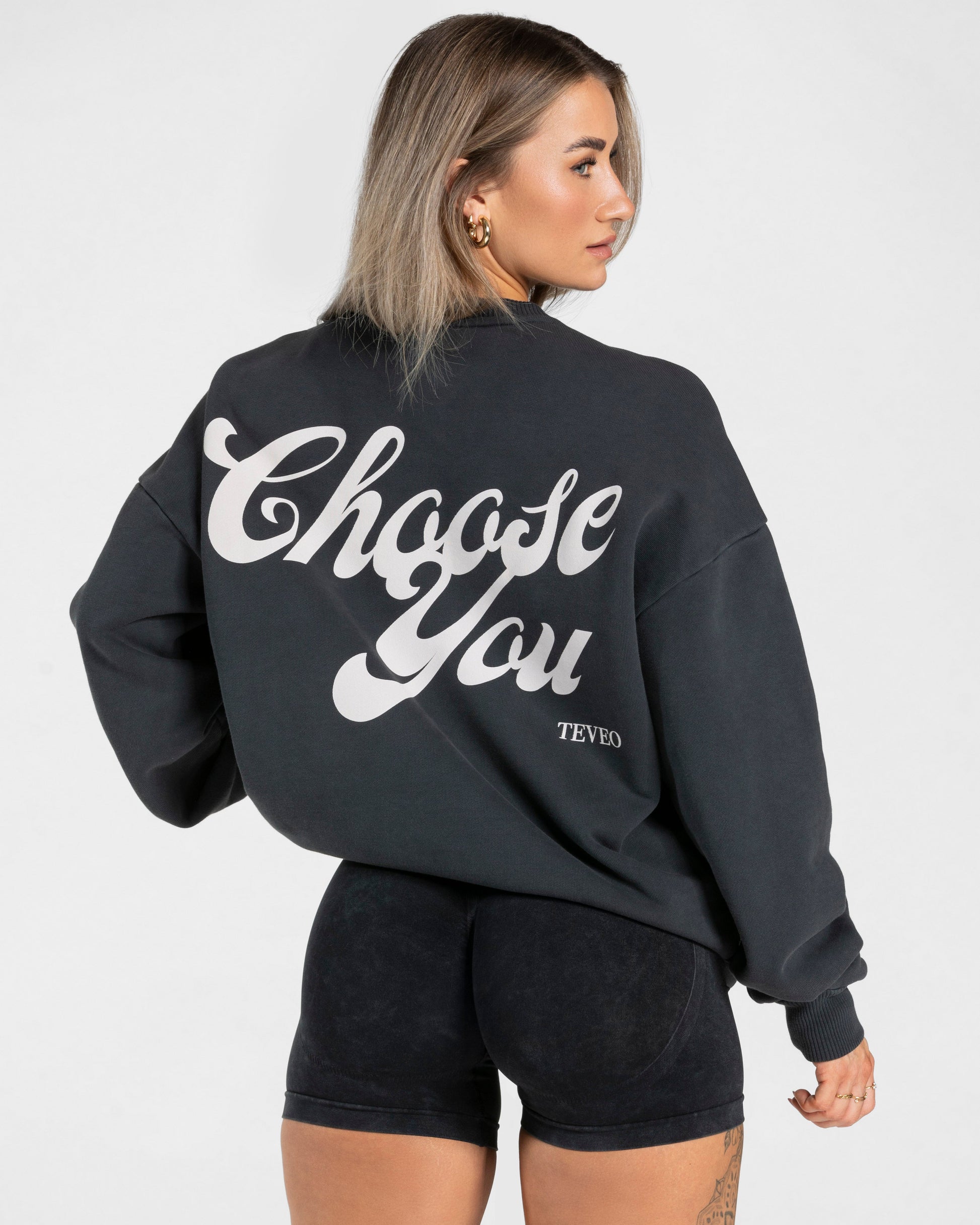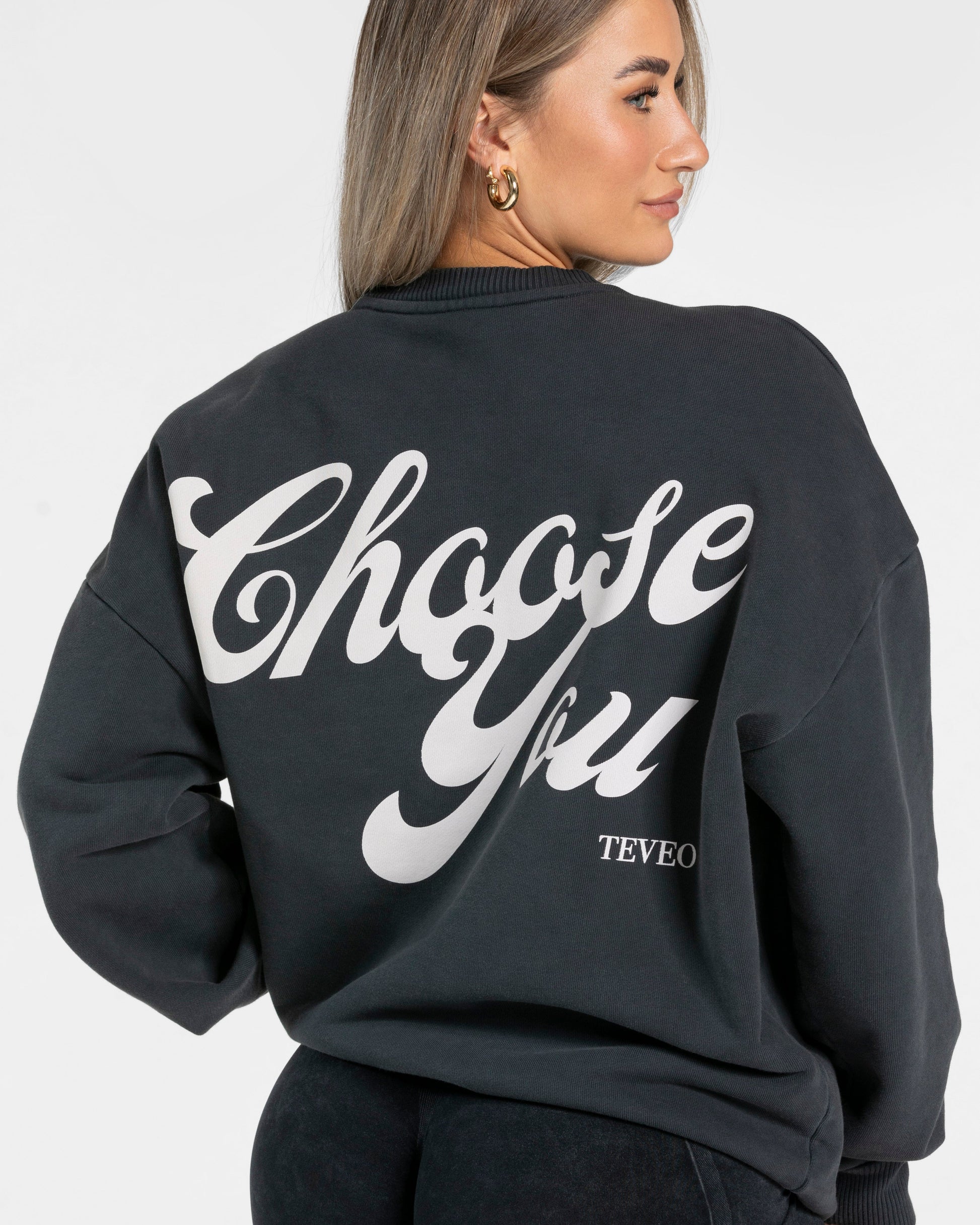 Unser TEVEO Acid Oversized Sweater in Schwarz ist perfekt für die kälteren Tage, dein Warm-Up sowie deinen Alltag. Der große Water Based Print "Choose You" auf dem Rücken ist das absolute Highlight des Sweaters.