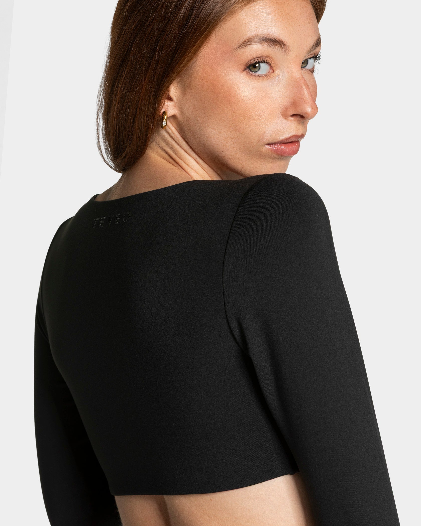 Beim Training wie im Alltag: Das Cropped Longsleeve in Schwarz ist dein neues Must-have für den Kleiderschrank. Dein neues Essential überzeugt mit einem minimalistischen Cropped Design mit Square Neck sowie dem integrierten BH mit herausnehmbaren Pads und elastischem Bund. Der Gummi am Saumabschluss sorgt gleichzeitig dafür, dass dein Cropped Longsleeve nicht hochrutscht. Das superweiche und atmungsaktive Material schmiegt sich mühelos an deinen Körper an und sorgt für deinen persönlichen Wohlfühlmoment, während das glänzende TEVEO-Logo auf der Rückseite das Design abrundet.