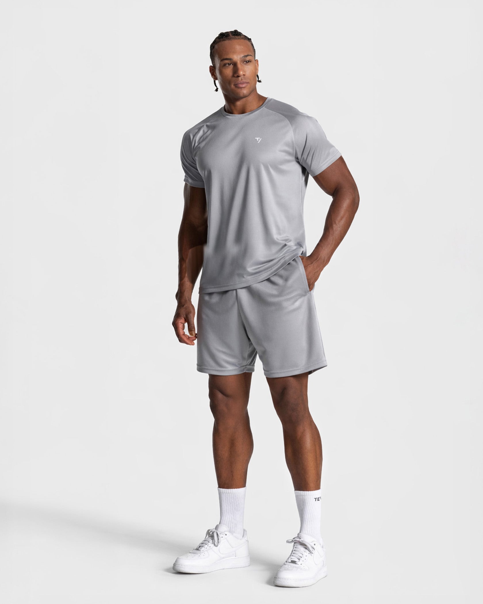Die Baseline Mesh Short in Hellgrau überzeugt mit einem cleanen Look und setzt mit dem kontrastfarbenen TV Logo in Weiß ein sportliches Statement. Der elastische Bund mit verstellbarem Kordelzug sorgt für optimalen Halt, während Reißverschlusstaschen mit Staydown Puller deine Essentials zuverlässig verstauen. Das atmungsaktive Mesh-Material sorgt für ein angenehm leichtes Tragegefühl – egal wie hart dein Training wird.