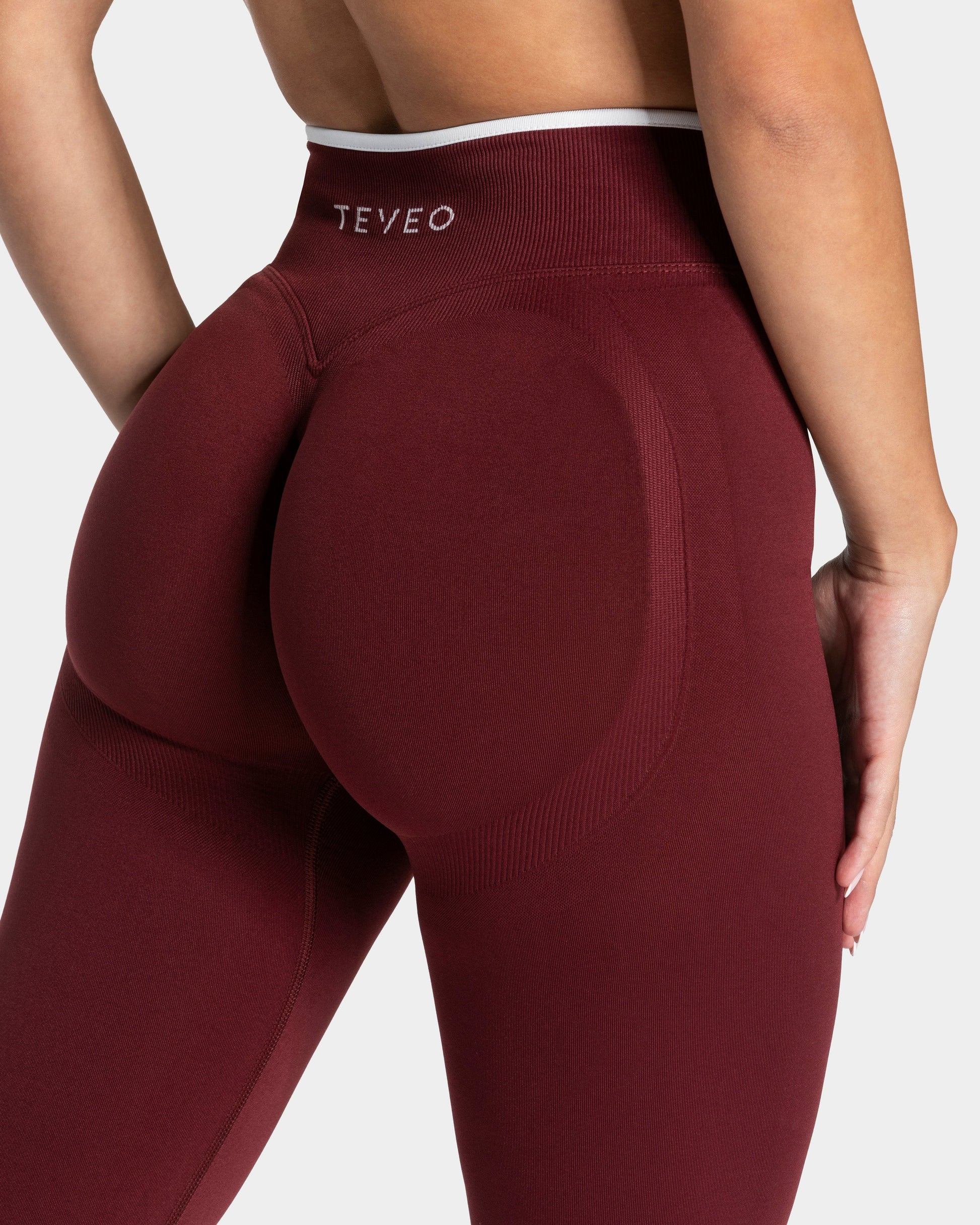 Die Contrastline Sculpt Scrunch Leggings in Weinrot betont deinen Booty durch den nicht sichtbaren und von innen verstärkten Scrunch. Zugleich sorgen der formende V-Bund sowie die Push-Booty Kontur für den unverwechselbaren TEVEO Push. Die weißen Kontrastnähte der Leggings sorgen für einen sportlich-eleganten Look.