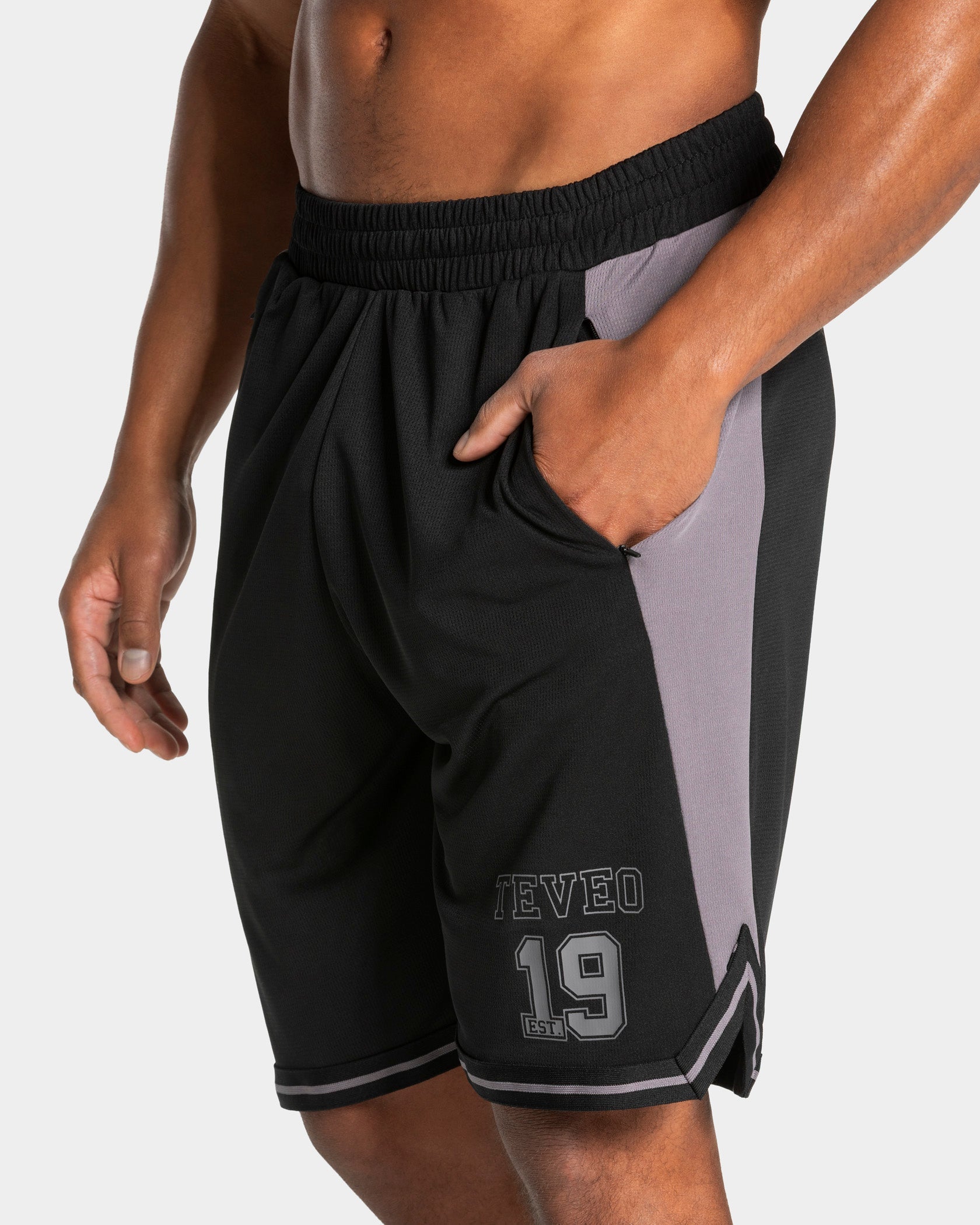 Die Football Shorts 9 Inch in Schwarz überzeugt mit einem Oversized Fit und ihrem leicht glänzenden, weich fallenden Mesh-Material. Seitliche Kontrast-Einsätze und das Ripp Tape mit Kontraststreifen am Saumabschluss unterstreichen das collegeinspirierte Design. Der elastische Bund mit verstellbarem Kordelzug, zwei seitliche Bewegungschlitze sowie Reißverschlusstaschen mit Staydown Puller ergänzen die Shorts mit funktionalen Details. Der Touchdown des Looks ergibt sich aus einem Kontrast TV Logo, einem TEVEO Logo und “est. 2019” Print auf der Vorderseite.