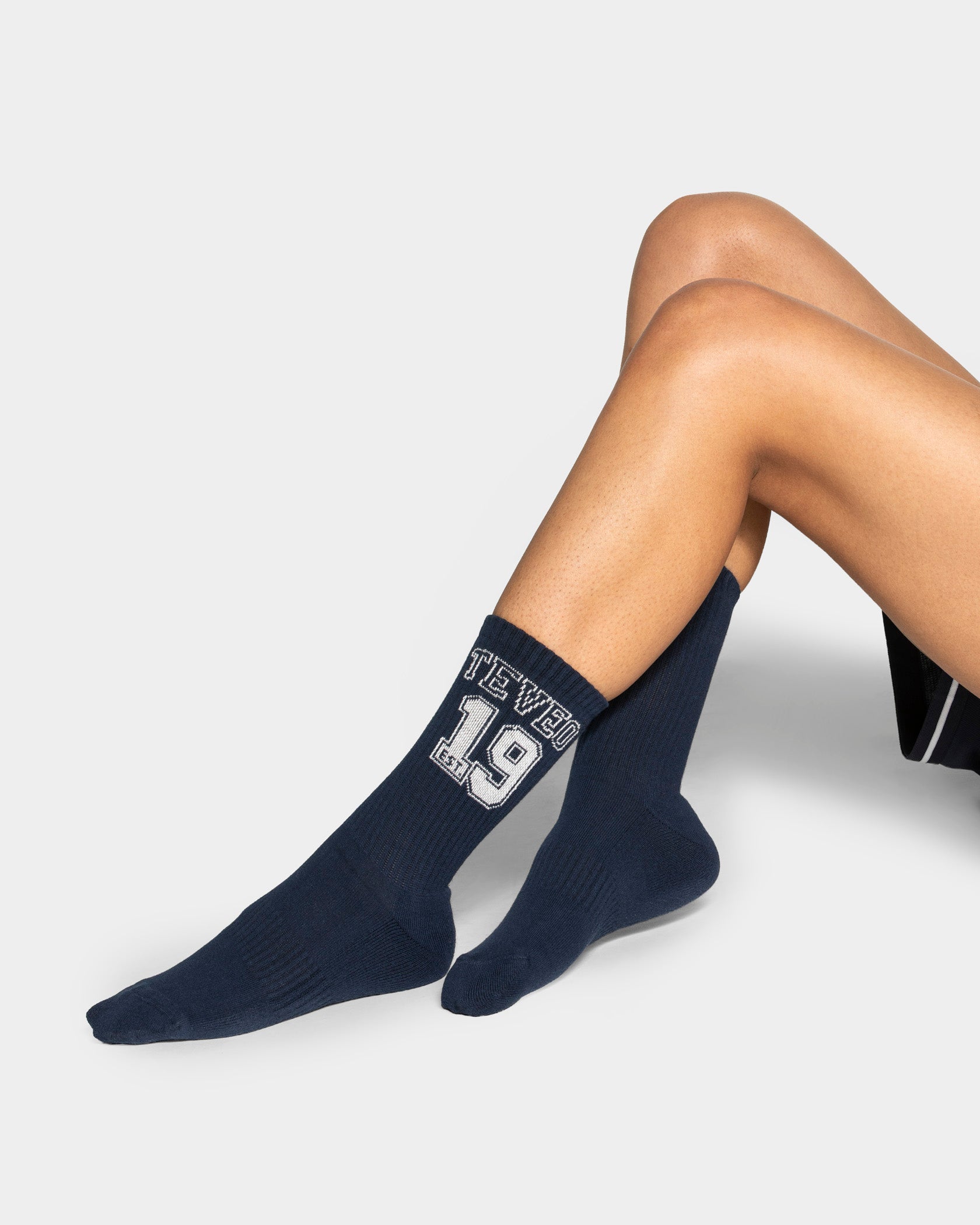 Die Football Socken in Midnight und Off-White lassen sich perfekt mit den anderen Pieces der Football Kollektion kombinieren.