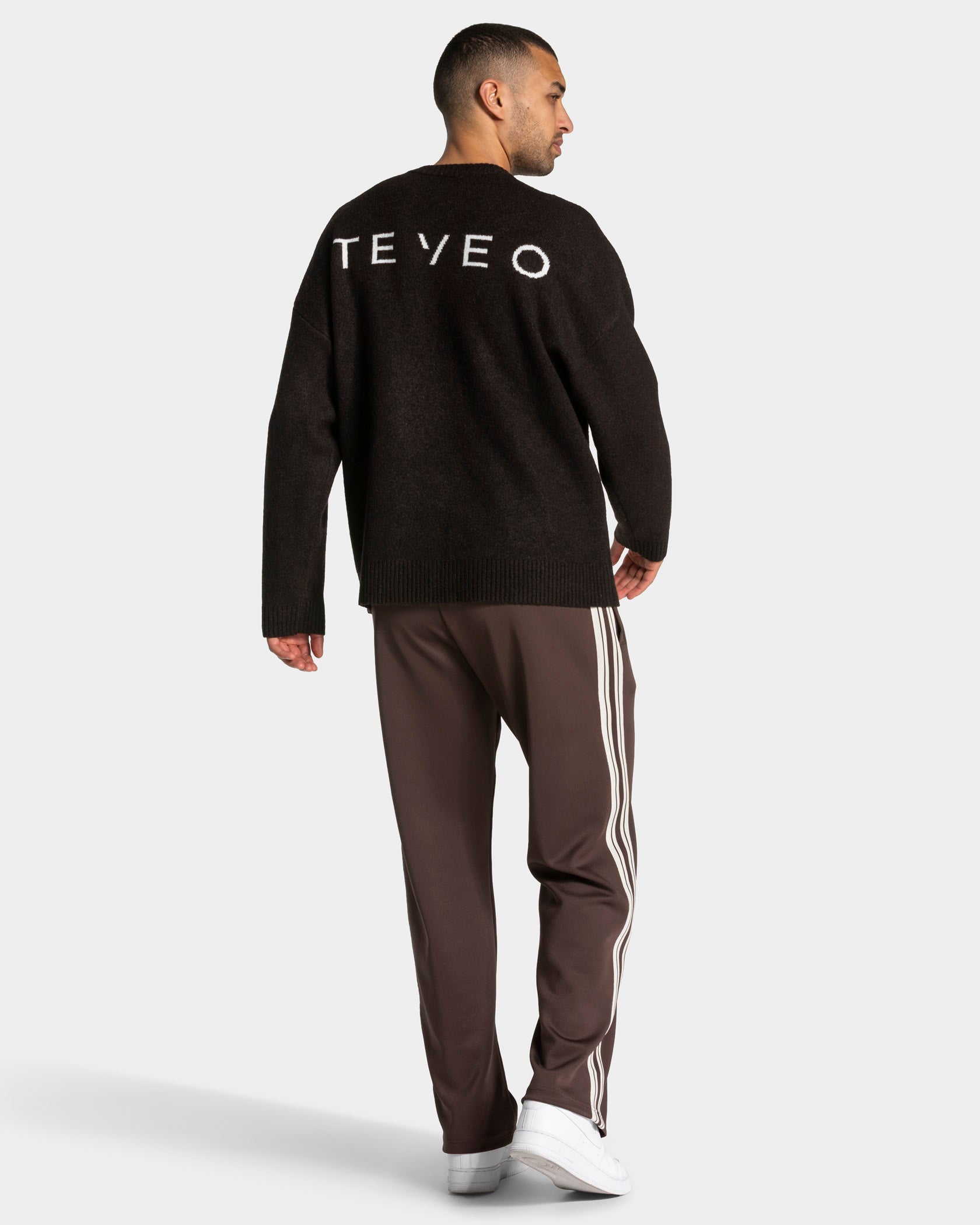 Der Knit Sweater in Dark Chocolate lässt sich optimal mit anderen Pieces von TEVEO kombinieren.