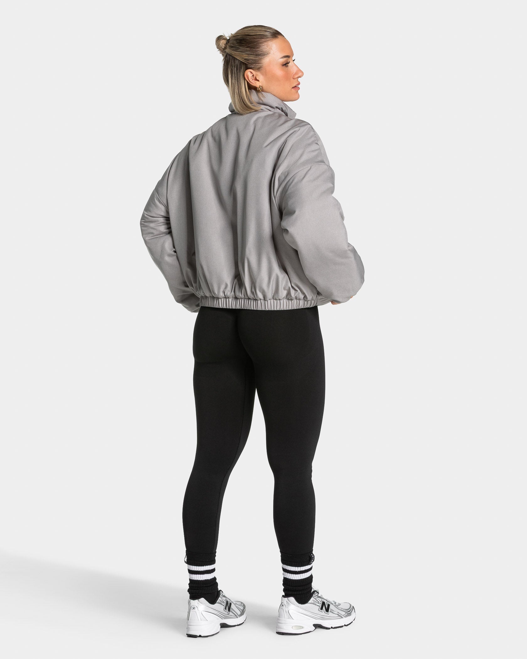 Die Lift Bomberjacke in Grau lässt sich optimal mit den anderen Pieces der Lift Kollektion kombinieren.