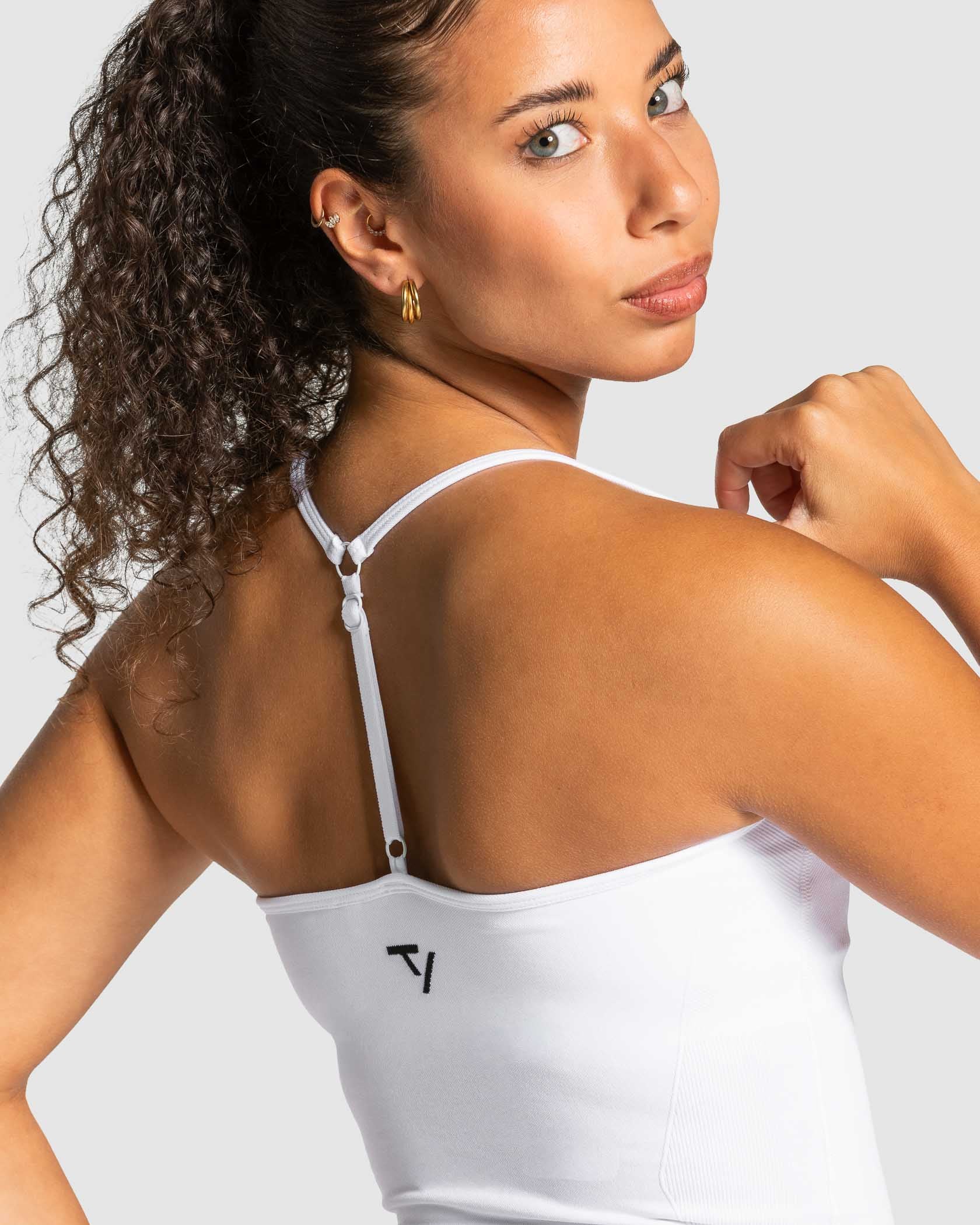 Das Lift Cami Top in Weiß lässt sich optimal mit den anderen Pieces der Lift Kollektion kombinieren.