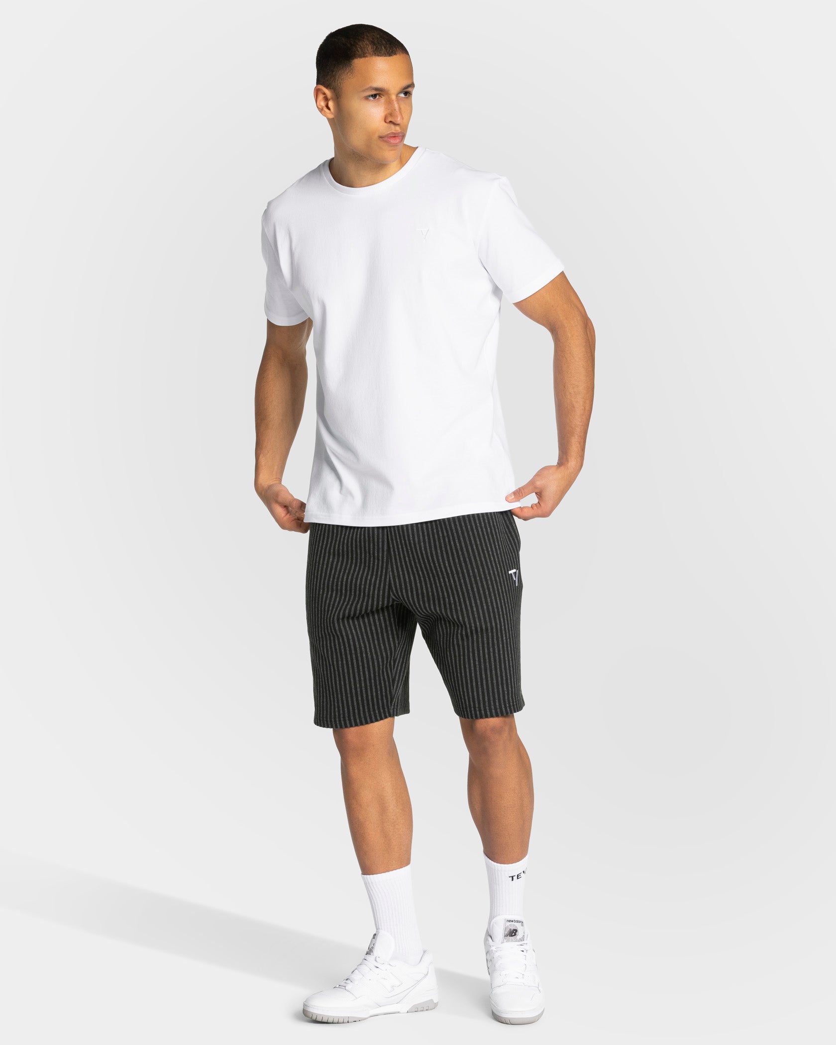Die Lift Shorts in Anthrazit Stripe überzeugt mit ihrem Oversized Fit und dem klassischen Bodybuilder-Schnitt, der dir maximale Bewegungsfreiheit, auch bei intensiveren Übungen, ermöglicht. Das strapazierfähige Material und der elastische Bund mit Kordelzug sorgen dafür, dass du deinen neuen PR ohne Einschränkungen knacken kannst. Seitliche Eingriffstaschen bieten ausreichend Platz für deine Essentials, während das gestickte Kontrast TV Logo sowie das TEVEO Lifting Patch das Design stilvoll abrunden.