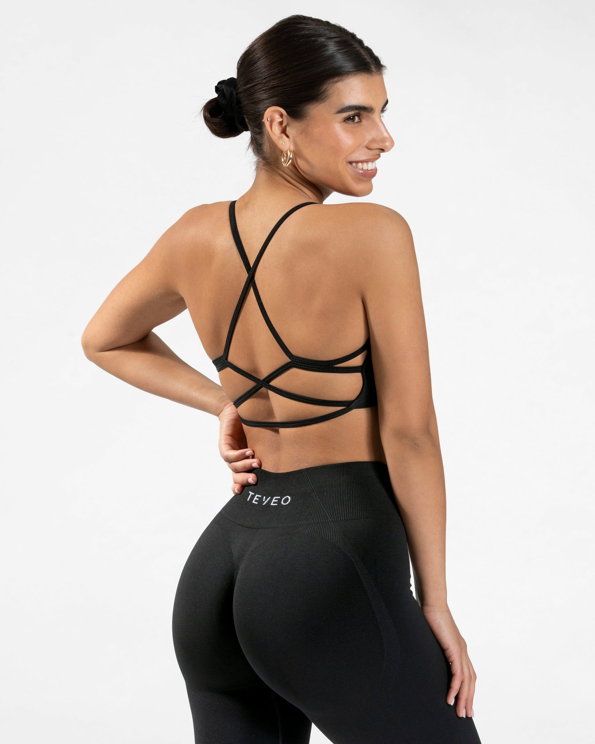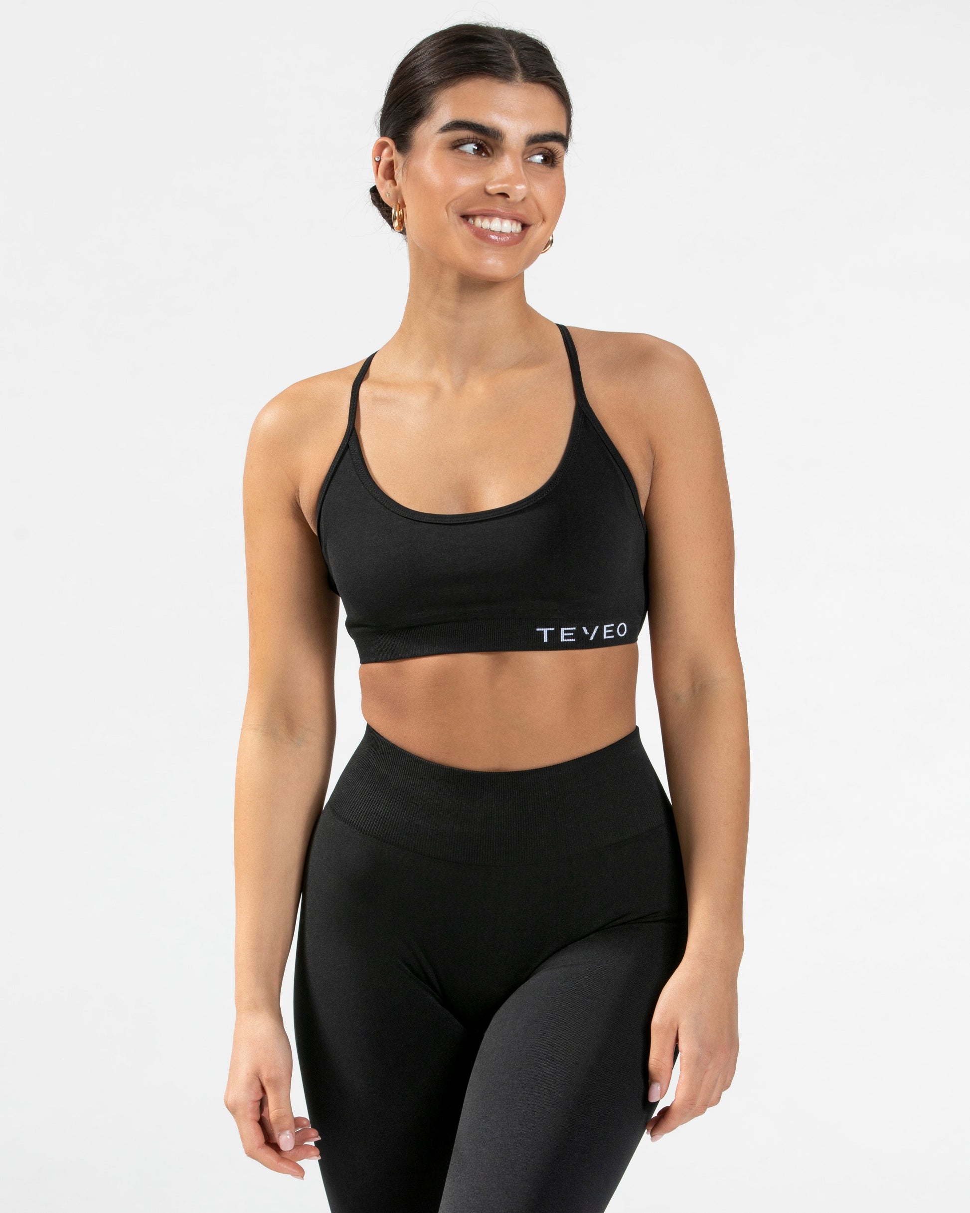 Der Pure BH in Schwarz ist kurz geschnitten und bietet dennoch einen guten Halt beim Training. Während er von vorne durch sein klassisches Design mit dem gestickten TEVEO Logo überzeugt, fällt von hinten die detaillierte Schnürung auf. So zaubert er dir einen wunderschönen Rücken.
