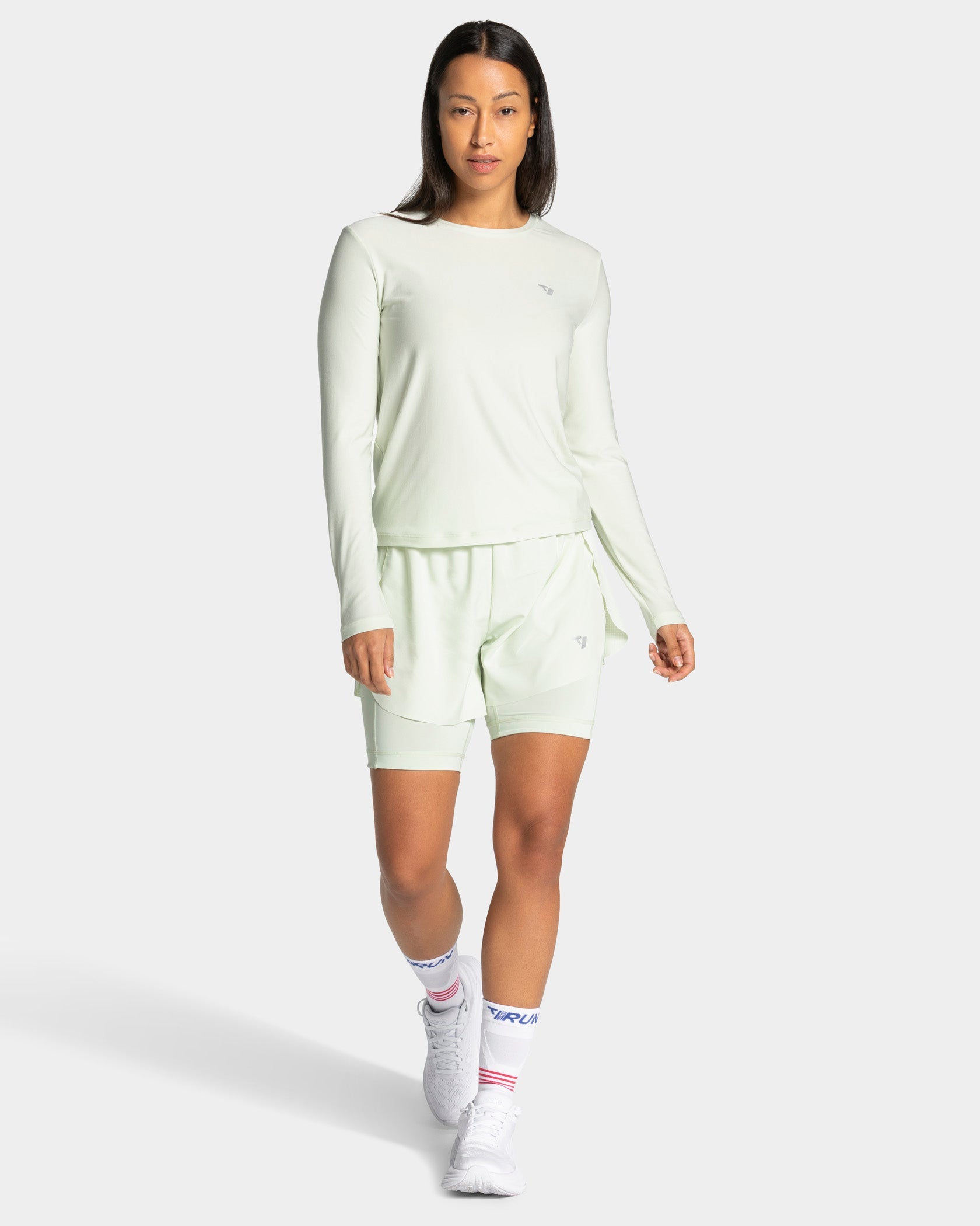 Das RUN Longsleeve in Ice Mint lässt sich optimal mit den anderen Pieces der Run Kollektion kombinieren.