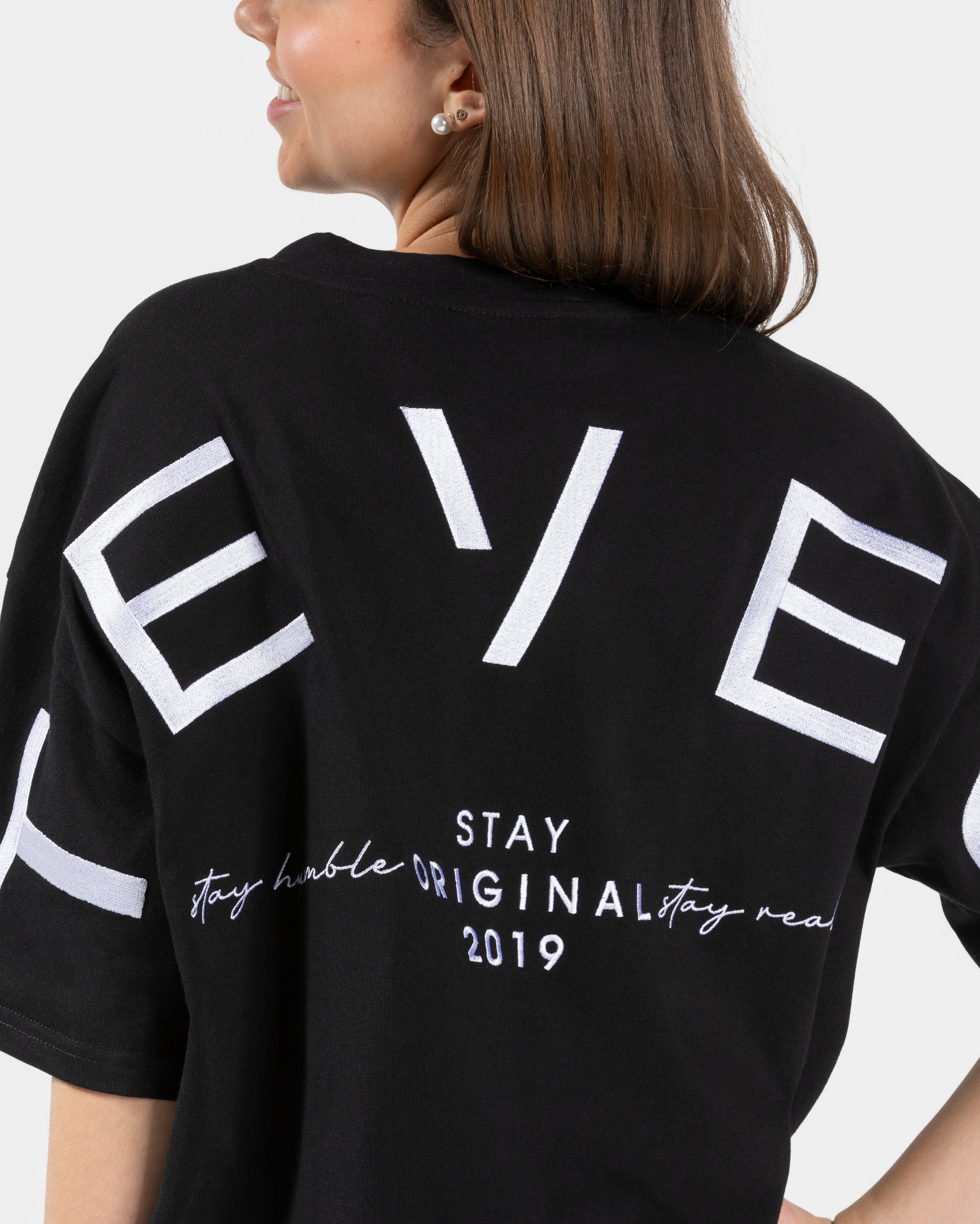 Create your Signature TEVEO Look! Mit unserem neuen Signature Oversized T-Shirt in Schwarz hast du nicht nur den idealen Begleiter für dein Training, sondern kannst es auch mit jedem anderen Outfit kombinieren. Das große, gestrickte TEVEO Logo auf dem Rücken ist das absolute Highlight des T-Shirts.