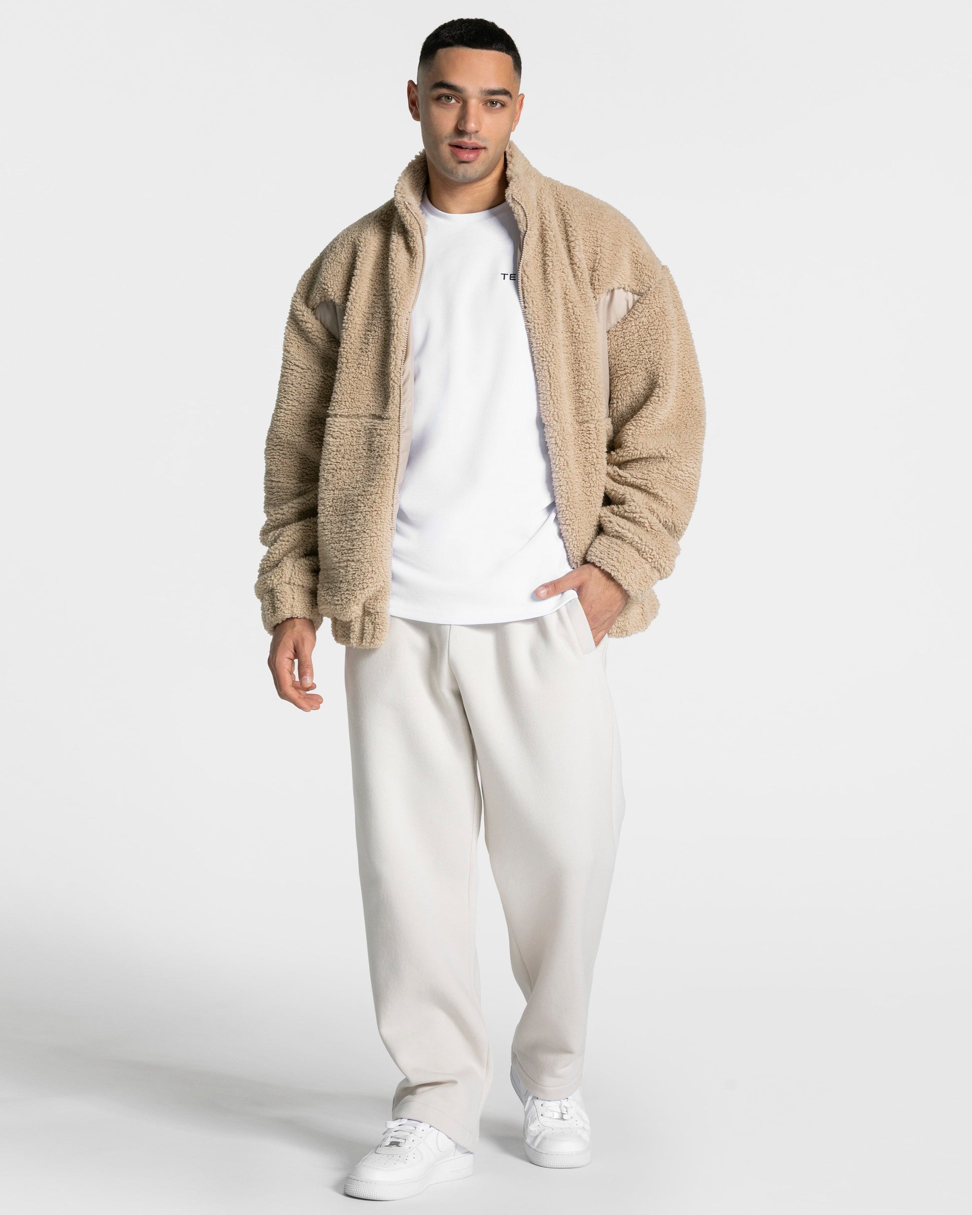 Lass dich von der weichen Teddy Jacke in Peanut verzaubern, die dir an kalten Tagen sowohl Wärme als auch Stil bietet. Aus hochwertigem, flauschigem Teddy-Fleece gefertigt, schmiegt sich die Jacke angenehm an deinen Körper und sorgt dank der warmen Fütterung für ein kuscheliges Tragegefühl. Der hohe Kragen schützt dich zuverlässig vor Wind und Kälte und gibt der Jacke ihren coolen, modernen Touch.