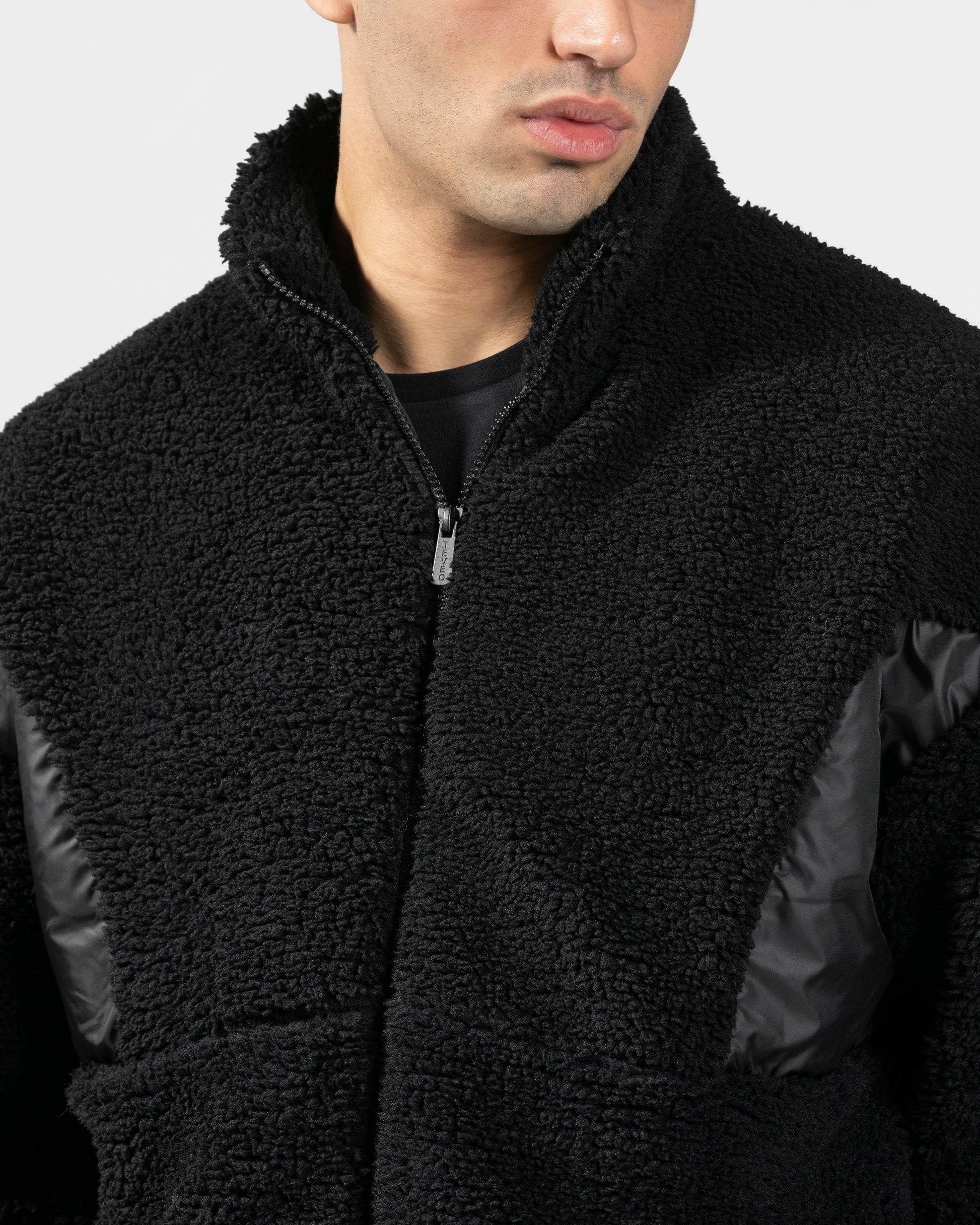 Lass dich von der weichen Teddy Jacke in Schwarz verzaubern, die dir an kalten Tagen sowohl Wärme als auch Stil bietet. Aus hochwertigem, flauschigem Teddy-Fleece gefertigt, schmiegt sich die Jacke angenehm an deinen Körper und sorgt dank der warmen Fütterung für ein kuscheliges Tragegefühl. Der hohe Kragen schützt dich zuverlässig vor Wind und Kälte und gibt der Jacke ihren coolen, modernen Touch.